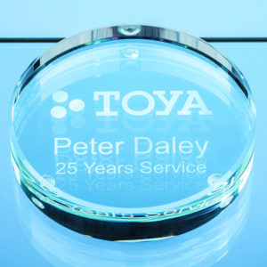 9cm x 18mm CLEAR GLASS ROUND PAPERWEIGHT