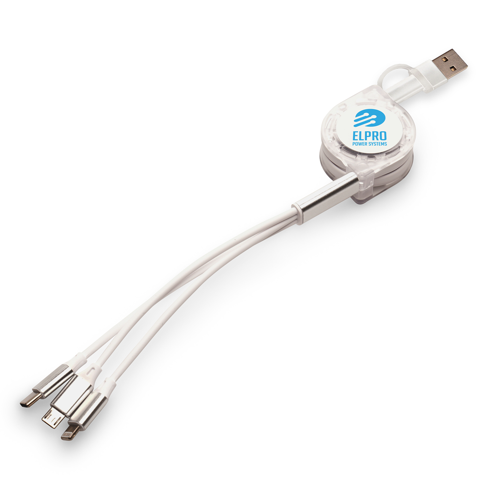 This promotional 3-in-1 charger combines convenience, versatility and customisation options. This charger is ideal for anyone who owns multiple devices. With its 3-in-1 design, it features a type-C power adaptors (compatible with iPhones), and a micro USB input port (compatible with Android devices). It also has a type-C and 2-in-1 connectors, ensuring compatibility with a wide range of devices. No matter what gadgets you have this charger has got you covered. Designed with practicality in mind, this charger has a unique reel design. Simply pull both ends of the cable to extend it up to 100cm, allowing for easy and flexible use. No more tangled cables or limited range, this charger provides convenience and power to your devices wherever you are. It can be customised with doming and full-colour label printing, transforming it into a powerful marketing tool. Add your logo or design to increase brand visibility and leave a lasting impression on a wide range of audiences. The promotional 3-in-1 Charger is a perfect giveaway for; tech enthusiasts, professionals, students and anyone who values convenience and versatility. It is not only a practical tool but also a great promotional item. Simplify your charging needs and stand out from the crowd with this branded 3-in-1 charger. Order yours now!