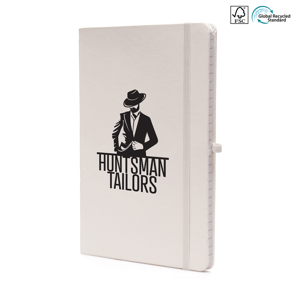 | QS0745WH | 'A5 Colour Nebraska Recycled Notebook' WHITE with WHITE bookmark + elastic | 4349 |