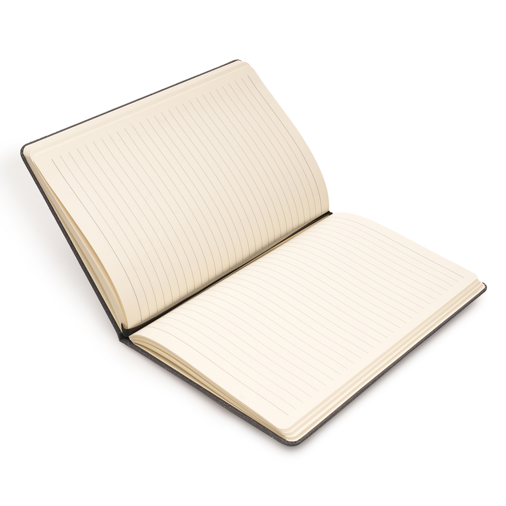 Looking for a stylish way to take notes on-the-go? Look no further than the A5 bonded 75% recycled hardcover notebook! With its A5 size, this notebook is compact and portable, making it great for individuals that are constantly on the go. This notebook features a ribbon bookmark allowing you to locate your important notes, elastic closure to keep all your pages in place. The large print space on the cover allows you to advertise your company logo or message in a prominent place, visible for all. This is the perfect onboarding gift to new employees or perfect giveaway at tradeshows, events and exhibitions. Show off your commitment to the environment!