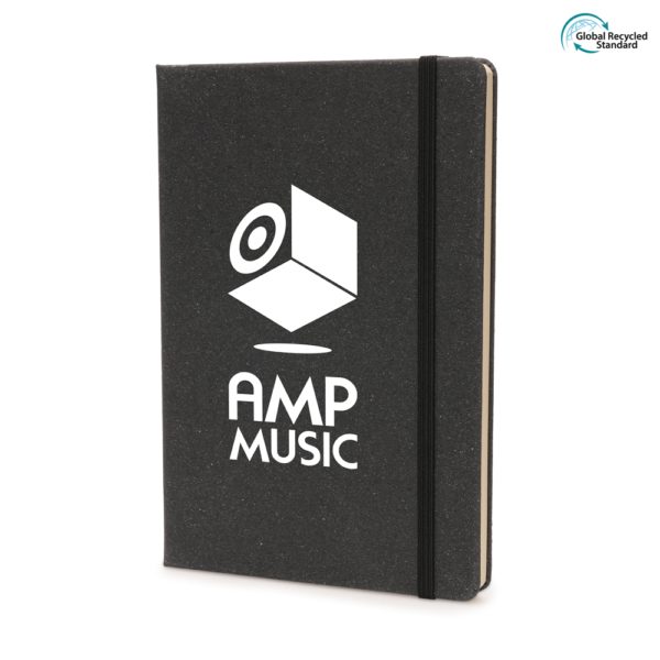 Looking for a stylish way to take notes on-the-go? Look no further than the A5 bonded 75% recycled hardcover notebook! With its A5 size, this notebook is compact and portable, making it great for individuals that are constantly on the go. This notebook features a ribbon bookmark allowing you to locate your important notes, elastic closure to keep all your pages in place. The large print space on the cover allows you to advertise your company logo or message in a prominent place, visible for all. This is the perfect onboarding gift to new employees or perfect giveaway at tradeshows, events and exhibitions. Show off your commitment to the environment!