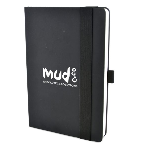 A5 PU soft finish 160 sheet lined notepad with bookmark, back pocket, pen loop and elasticated close.