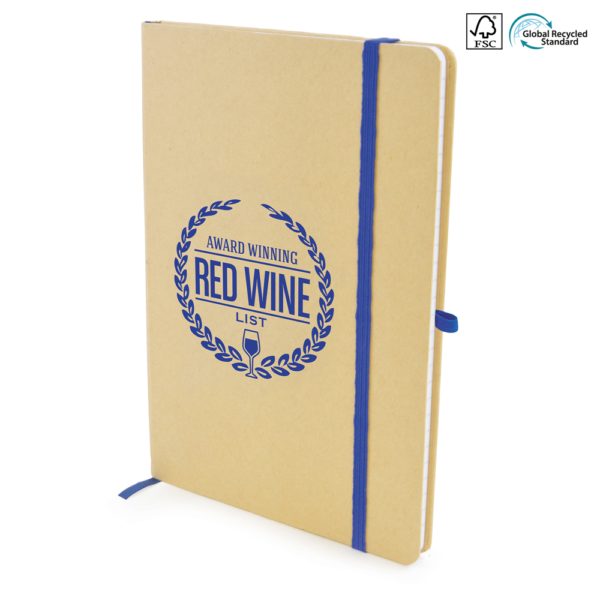 | QS0545BL | 'A5 NATURAL Nebraska Recycled Notebook' with BLUE coloured bookmark+elastic | 19180 |