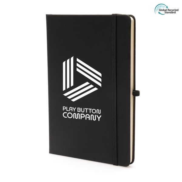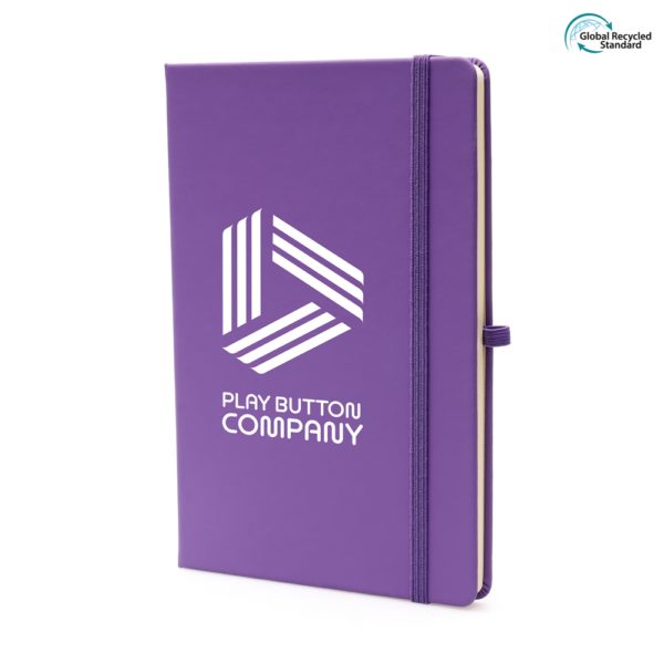 The recycled promotional notebook is a perfect companion for your customer?s writing and organisational needs. Every component of this notebook is made from recycled materials, making a significant contribution to reducing waste. With 80 sheets of recycled paper, this notebook offers an ample space for your customer?s notes, ideas, and doodles. The vibrant coloured recycled PP cover adds a touch of personality to the notebook, while the ribbon bookmark makes it easy to find your last page or mark important sections. The built-in elastic band securely holds the notebook closed, protecting its contents and ensuring nothing falls out. In addition, this notebook features a convenient pen loop, allowing your customers to keep their writing instrument close by at all times. The back pocket provides extra storage for loose papers, business cards, or small notes. This notebook can be customised with your logo or design, making it a powerful promotional item for your business, event, or occasion. Order yours now!