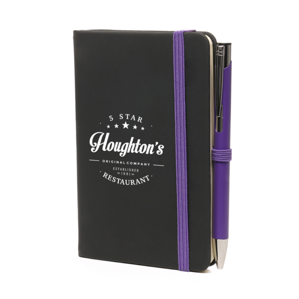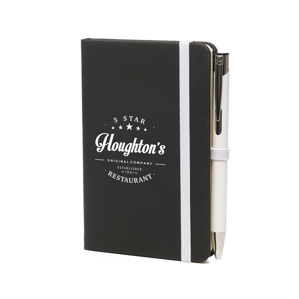 Price includes a one colour print to the note book and engraving to one position on the pen. Individual name available at additional cost.
