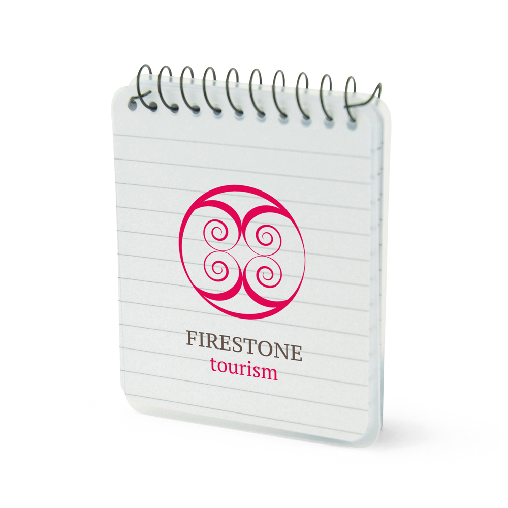 40 sheet mini spiro bound lined notebook with PP plastic cover. Available in red, blue or translucent.
