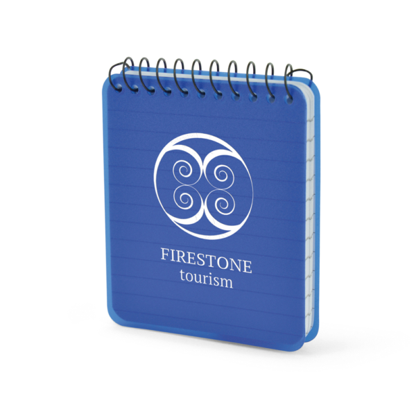 40 sheet mini spiro bound lined notebook with PP plastic cover. Available in red, blue or translucent.