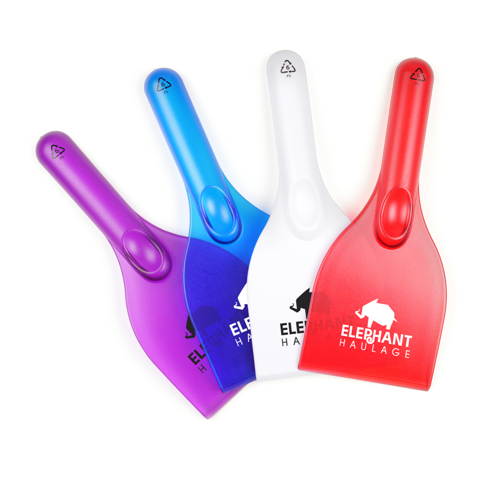 Sturdy plastic ice scraper with handle and thumb grip. With practical design and great branding area, make sure it's your brand that comes to the rescue on cold, icy mornings. Available in 5 colours.