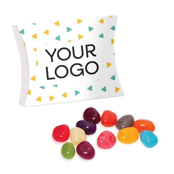 Eco Pouch Box comes filled with Jelly Bean Factory. This filling is scooped directly into the box. This box is made from Sustainably Sourced Packaging, and can be composted/recycled. Salsa approved Factory.