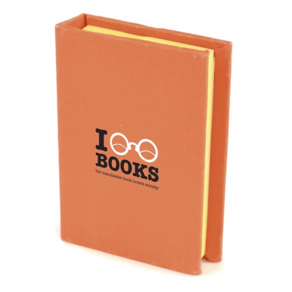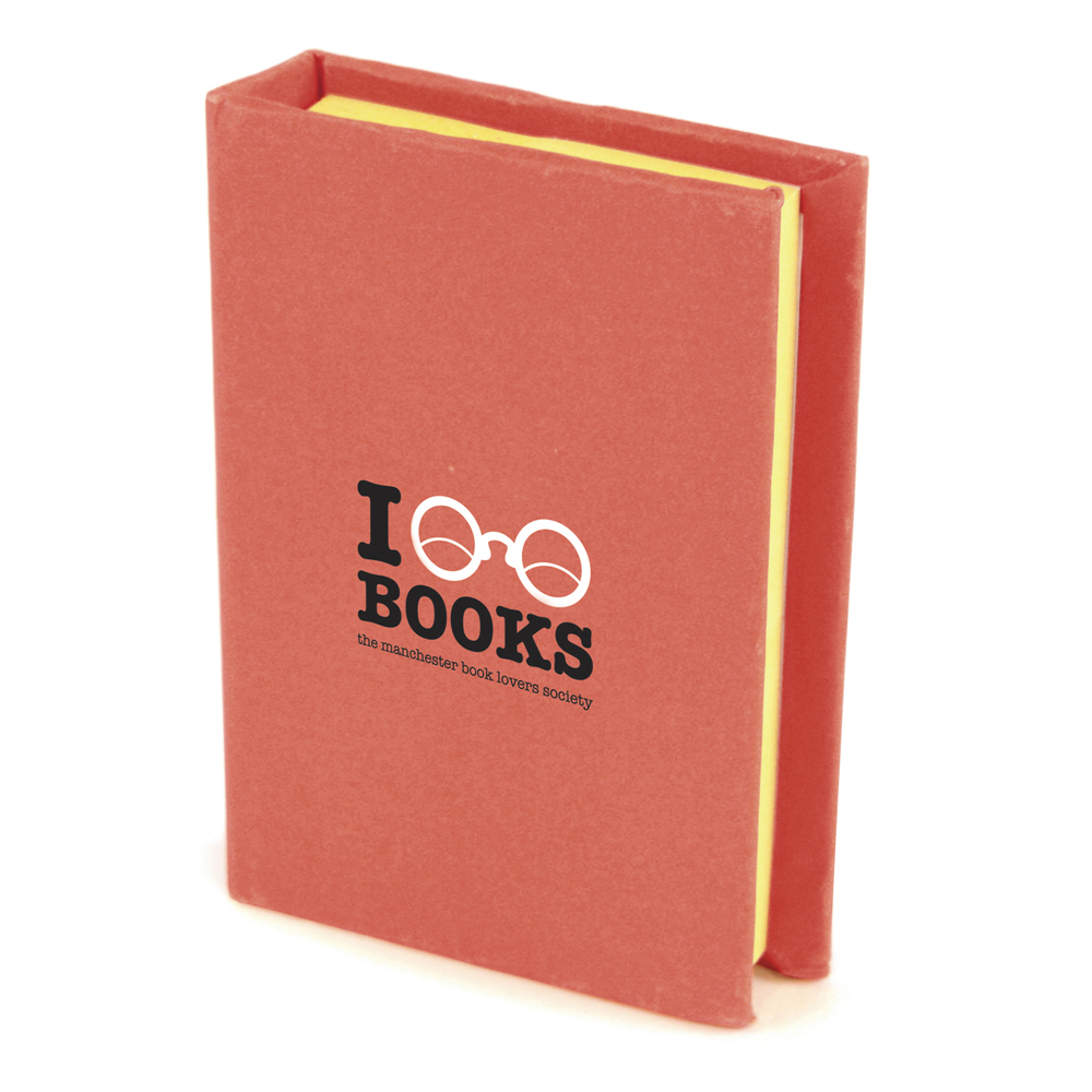 Small Hard Back Book with sticky notes and five coloured flags. Available in various colours.