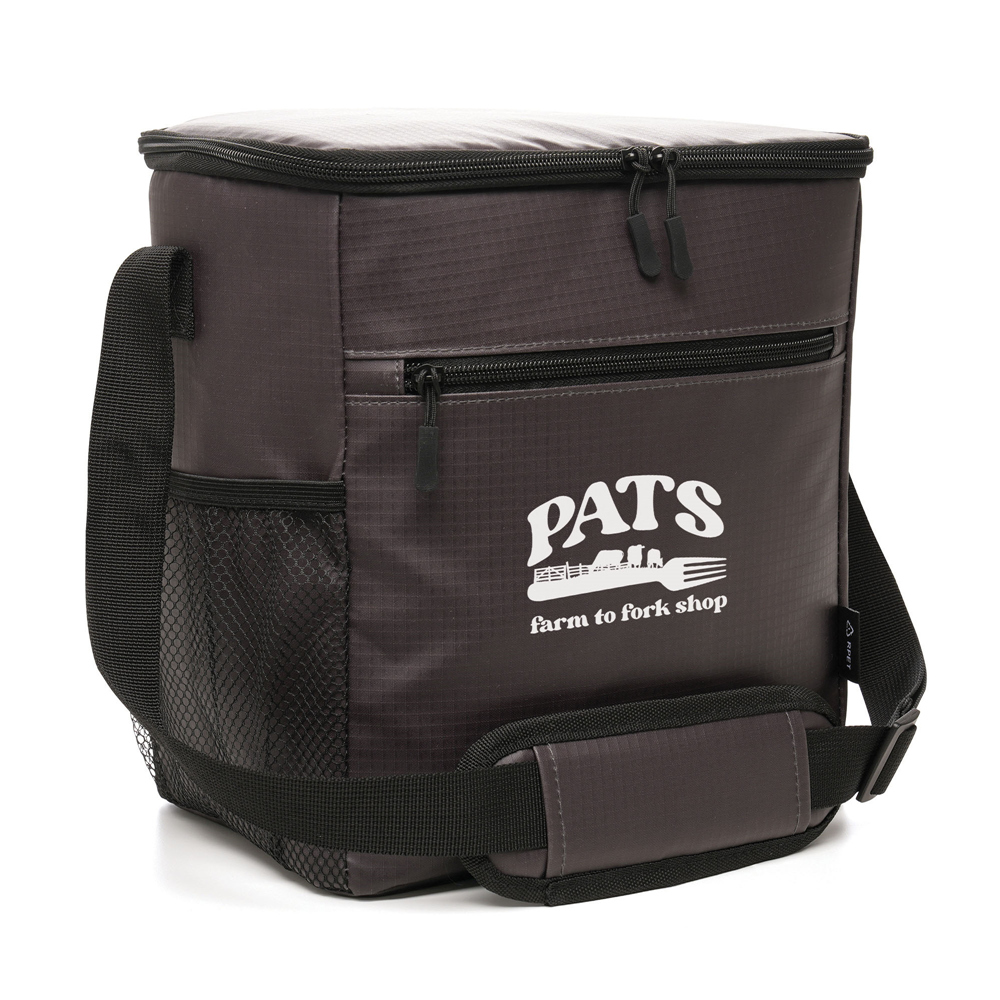 Promote your company with this premium RPET Cooler Bag. Featuring an adjustable padded shoulder strap, a mesh side pocket and a front zip compartment. Ideal for keeping your food and beverages cool, such as sandwiches and drink cans. Crafted with RPET recycled plastic materials, this stylish and sleek bag can be repurposed, making it a perfect choice for giveaways. Take advantage of its large branding area to showcase your company's logo at trade shows, events and conferences. Show off your ample branding space and order today!