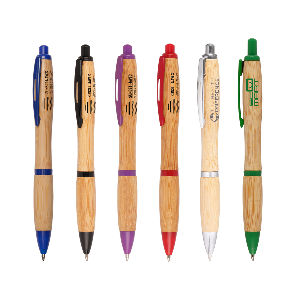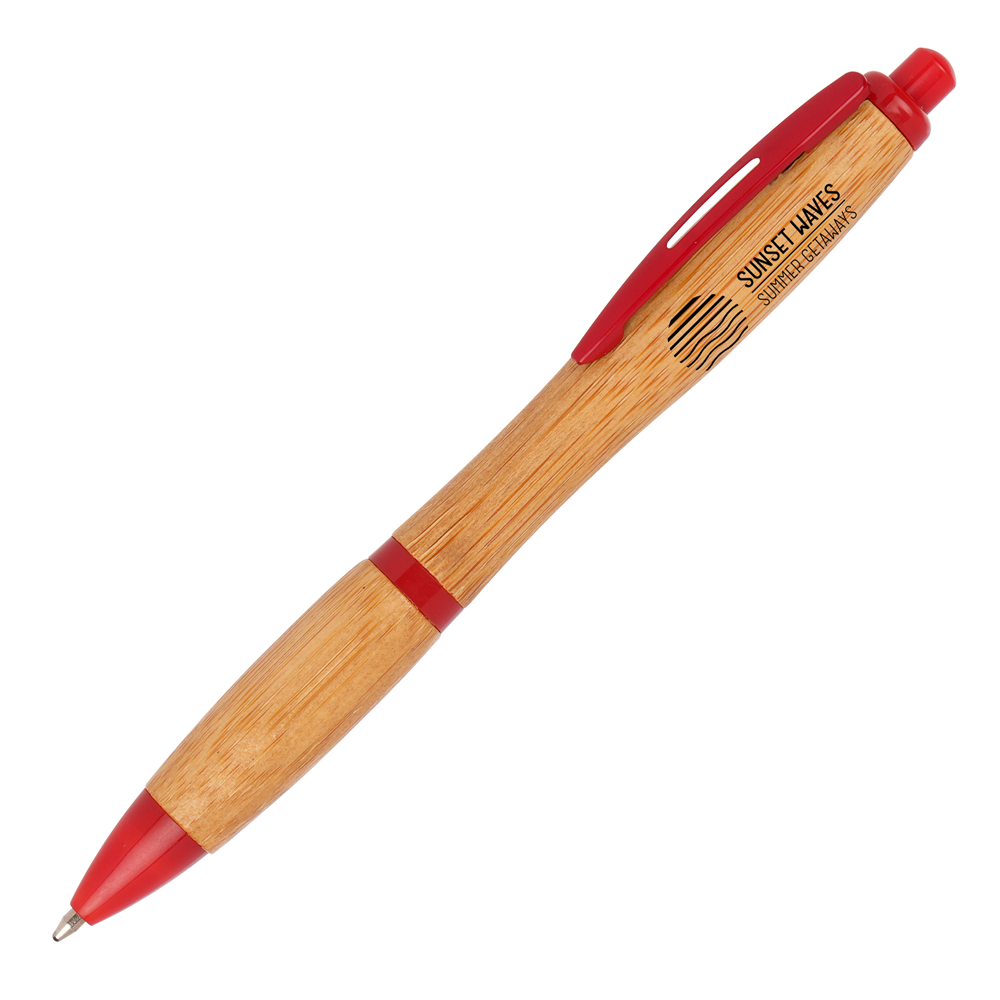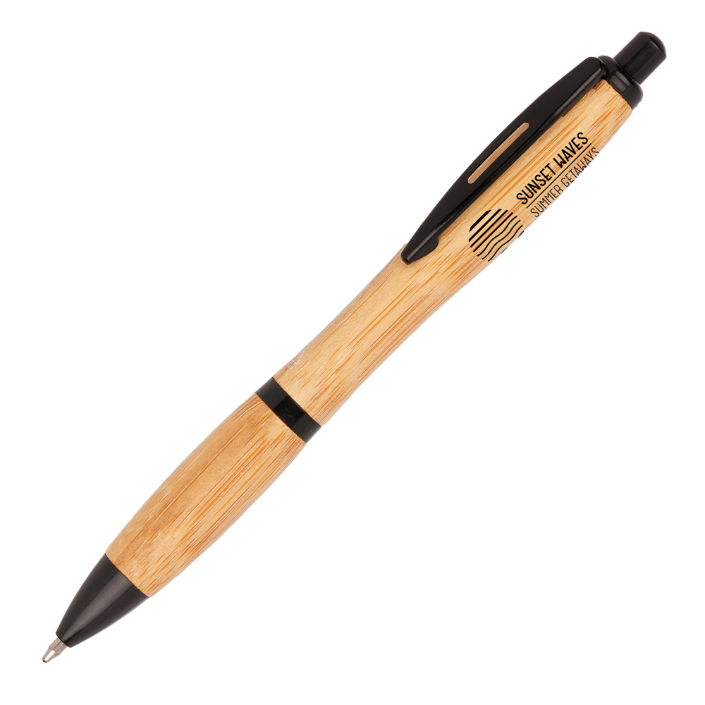 This stylish and ergonomic ball pen features a sleek, curvy design with barrel components crafted from bamboo, offering a natural touch to your promotional merchandise collection. The smooth wooden surface provides an excellent space for laser engraving, pad printing or digital printing, allowing your brand to stand out with a premium finish. Designed for comfort and durability, this pen is a perfect choice for corporate gifting, trade show giveaways, and branded stationery. Its blend of contemporary design and natural materials makes it an attractive alternative to traditional plastic pens, appealing to businesses looking for a thoughtful yet practical promotional product. Order now!