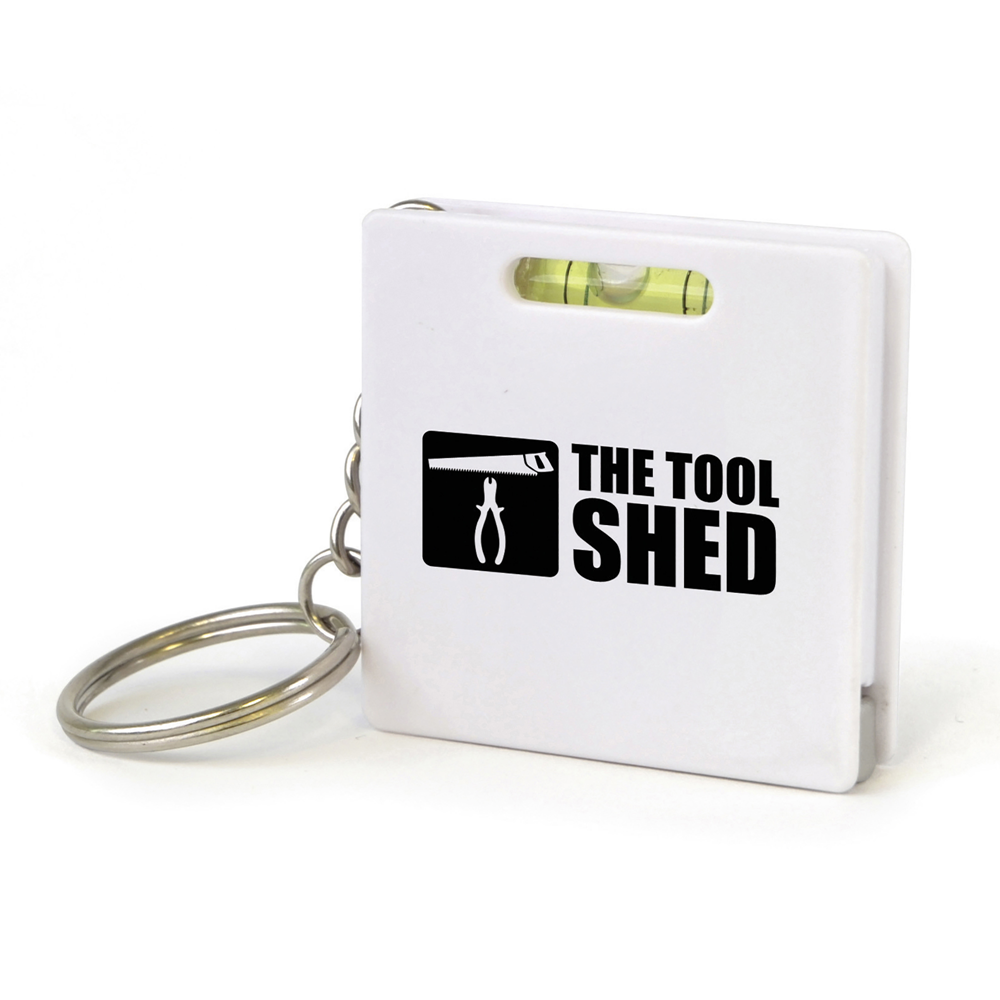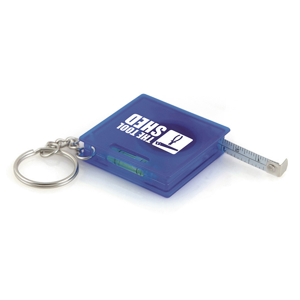 1m tape measure keyring with spirit level.